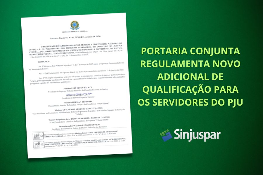 PORTARIA CONJUNTA REGULAMENTA NOVO ADICIONAL DE QUALIFICAÇÃO PARA OS SERVIDORES DO PJU